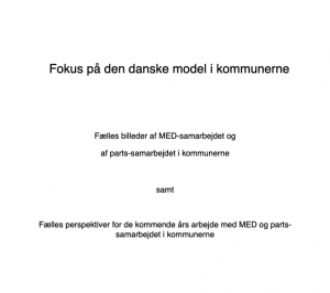 KL og Forhandlingsfælles-skabet har som et resultat af projektet ’Fokus på den danske model i kommunerne’ ud-arbejdet et samlet materiale. Materialet beskriver dels fælles billeder på det lokale MED og partssamarbejde, og dels KL og Forhandlingsfællesskabets aftale om fælles perspektiver.